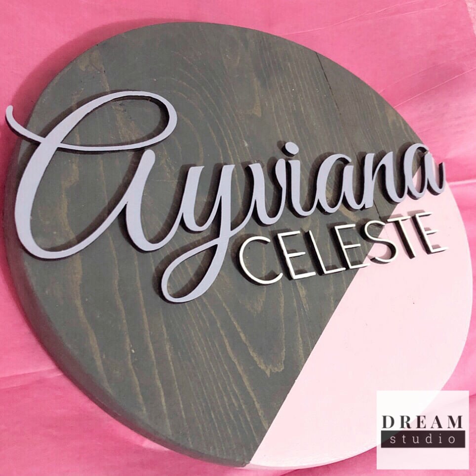 1.) Pick your choice of stain/color for round. 2.) Two names you want + colors. 3.) Pick two font styles OPTIONAL: Let us know if you'd like to have it dipped like photo shown. (If so, let us know what color.)